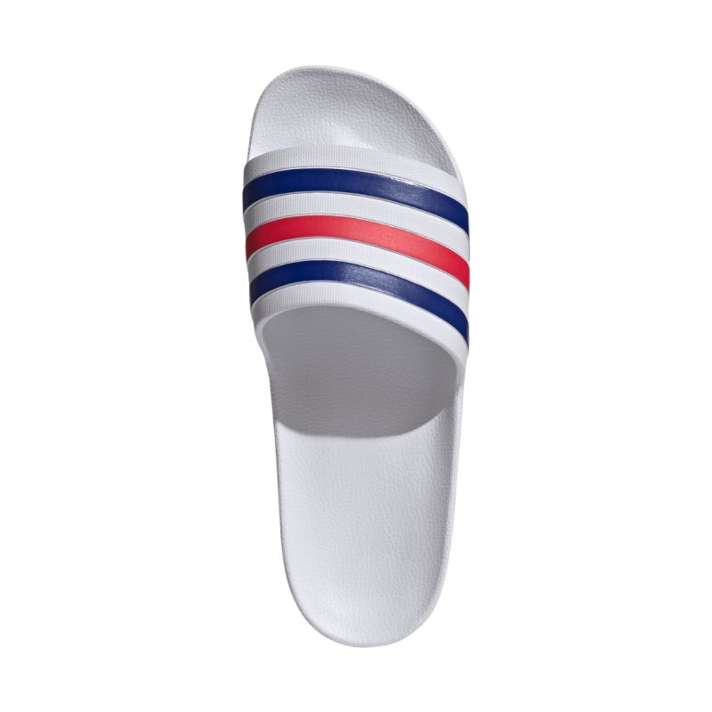 Klapki adidas Adilette Aqua białe HQ2448 Klapki adidas łączą w sobie kultowy styl, ciekawy design i sportową funkcjonalność. Jednopanelowa, szybkoschnąca konstrukcja zapewnia wytrzymałość i tworzy praktyczne obuwie na basen, plażę czy też pod prysznic po ciężkim treningu. Pojedynczy pasek. Podeszwa zewnętrzna z przyczepnym bieżnikiem zapewnia amortyzację i stabilność.