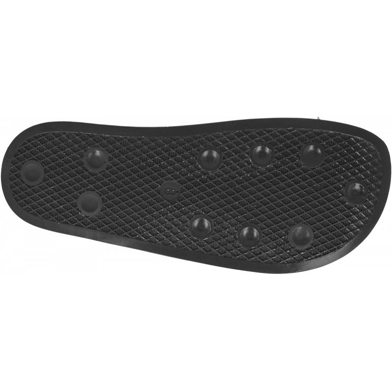 Wyprofilowana, wyższa podeszwa doskonale układa się na stopie i zapewnia optymalną amortyzację. Pojedynczy pasek wyścielony materiałem tekstylnym został przyozdobiony charakterystycznymi dla adidasa "trzema paskami". Na przyczepnościom oraz stabilnością dba odpowiednio przygotowany bieżnik.