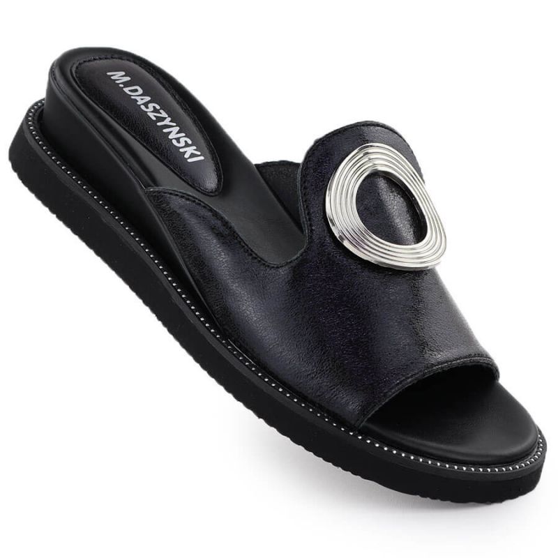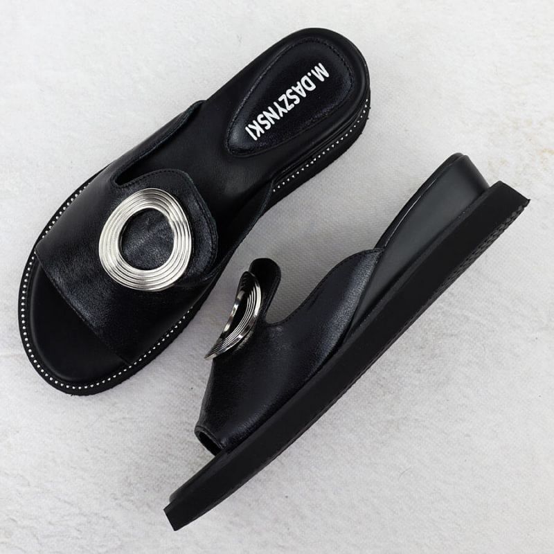Moda i niezwykła wygoda chodzenia to propozycja klapek od renomowanej marki M.Daszyński. Cholewka wykonana jest z wysokiej jakości skóry ekologicznej. Klapki ponadczasowe, doskonałe na każdą okazję.