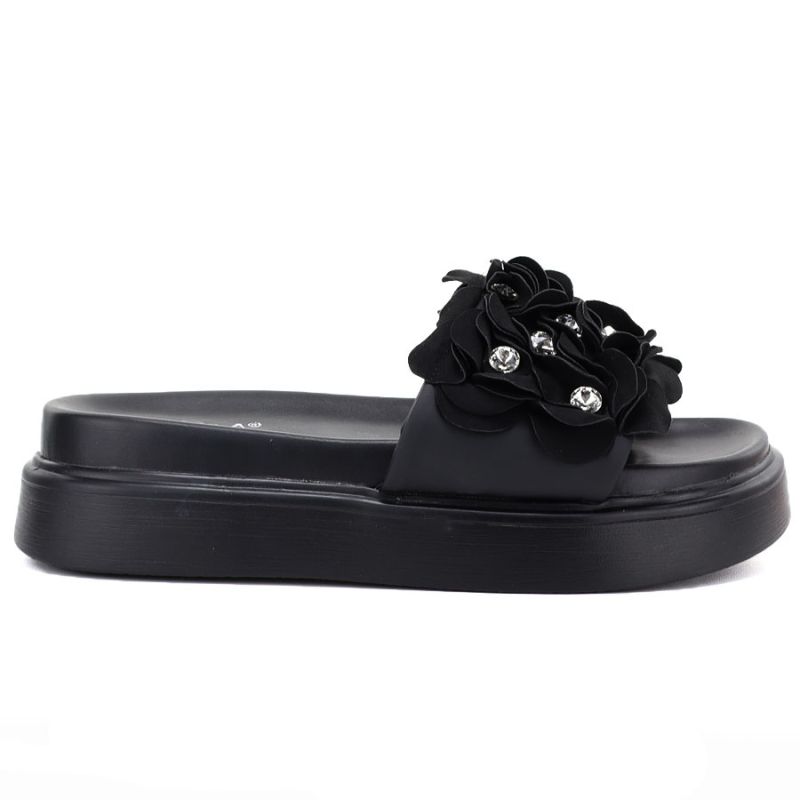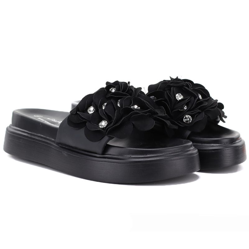 Klapki damskie na platformie w kwiaty czarne D&A by S.Barski MR61-9015