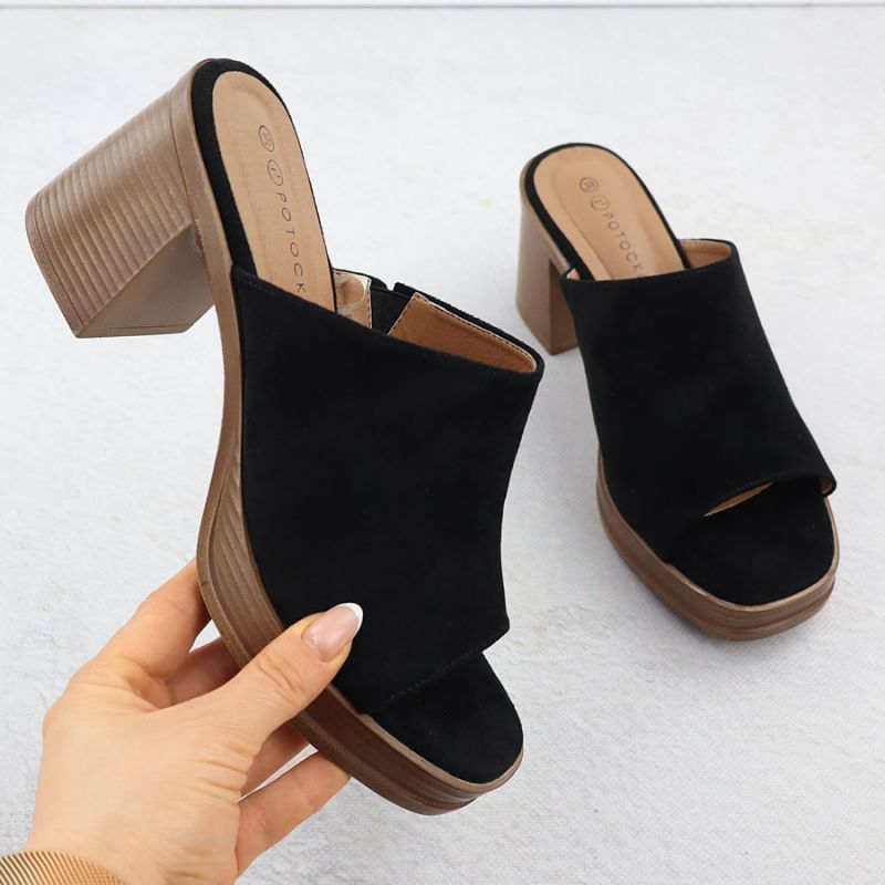 Niezwykle modna propozycja klapek od marki Potocki w niezwykle wygodnej formie. Klapki osadzone są na wygodnej platformie i stabilnym słupku, gwarantują doskonałe dopełnienie letniej kobiecej stylizacji, zapewniając pełen komfort chodzenia.