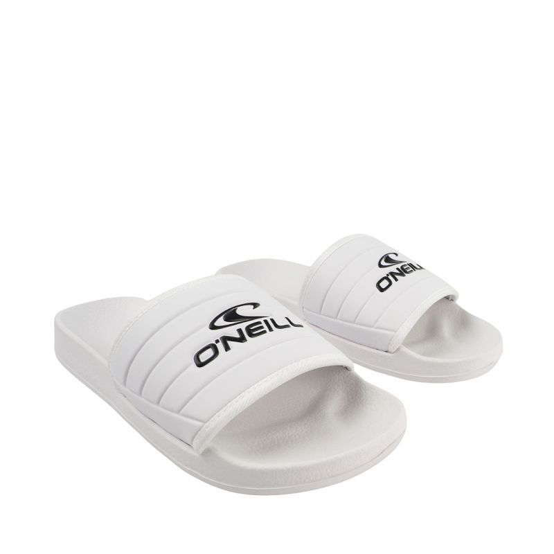 Klapki męskie O'Neill Kelso białe 90261043 1FG Klapki męskie O'Neill sprawdzą się na co dzień. Konstrukcja z szerokim, syntetycznym paskiem podszytym miękkim materiałem. Wyprofilowana wkładka. Podeszwa środkowa ze sprężystej pianki. Przyczepny bieżnik.