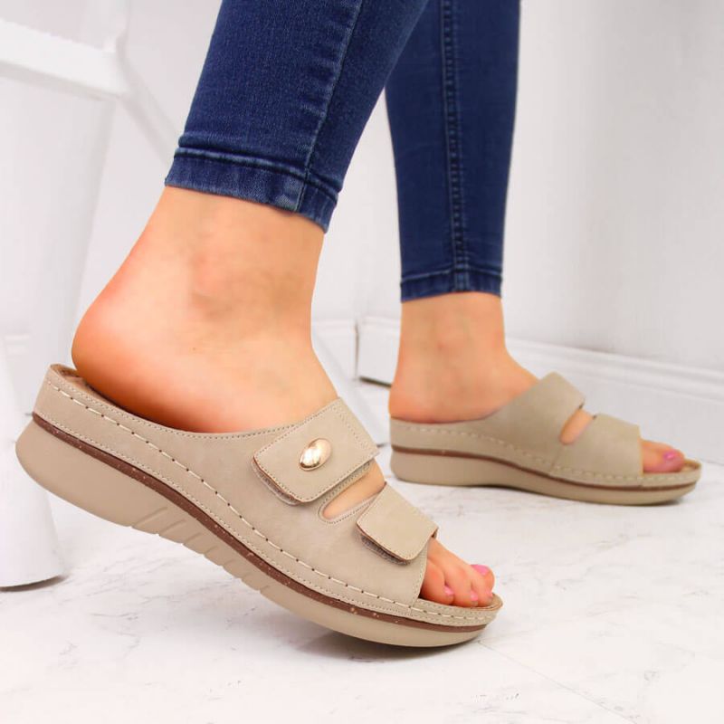 Klapki na koturnie na rzepy eVento W EVE224B beżowe