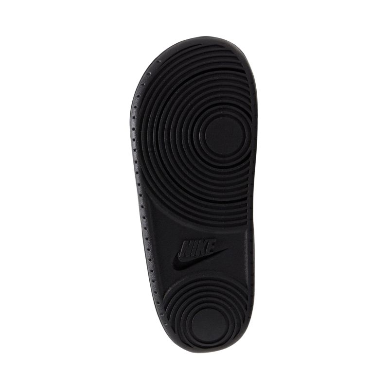 Klapki Nike Offcourt czarne BQ4639 012 Klapki Nike sprawdzą się na co dzień i podczas aktywności nad wodą. Szeroki pasek. Profilowana wkładka. Podeszwa środkowa z miękką pianką Revive o dwóch gęstościach. Podeszwa zewnętrzna ze strukturalnym bieżnikiem. Logo Nike.