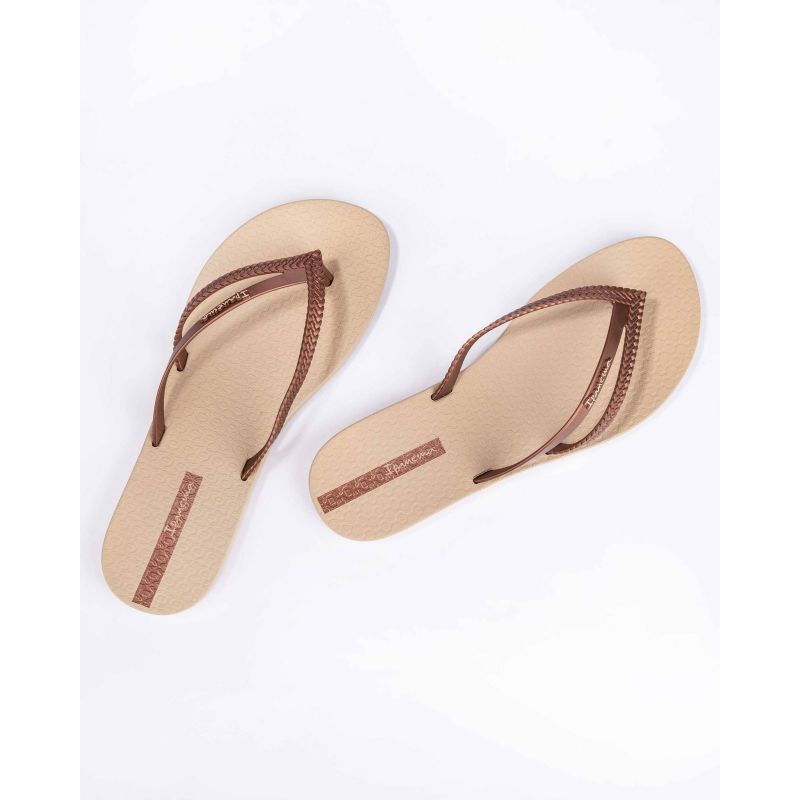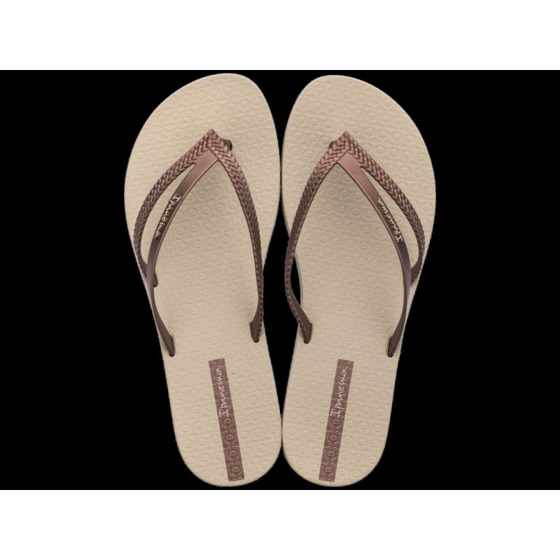 Stylowe damskie japonki idealne na lato. Posiadają oryginalną konstrukcję z podwójnym paskiem z subtelną plecionką. Wysokiej jakości materiały zapewniają klapkom niezwykły komfort noszenia.