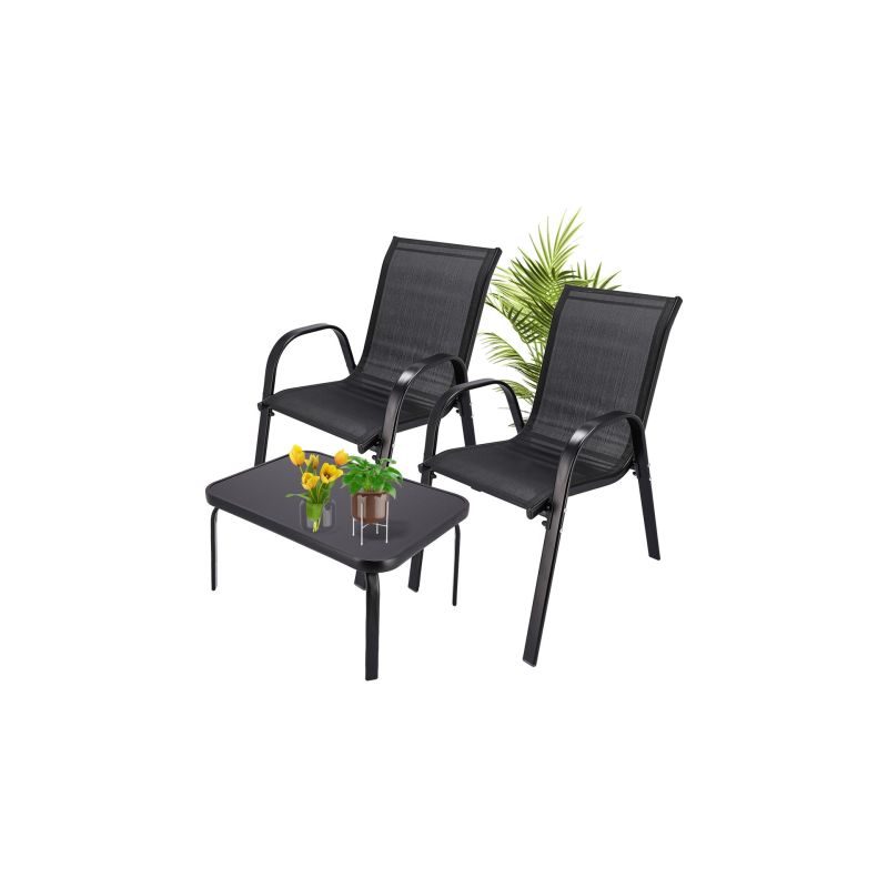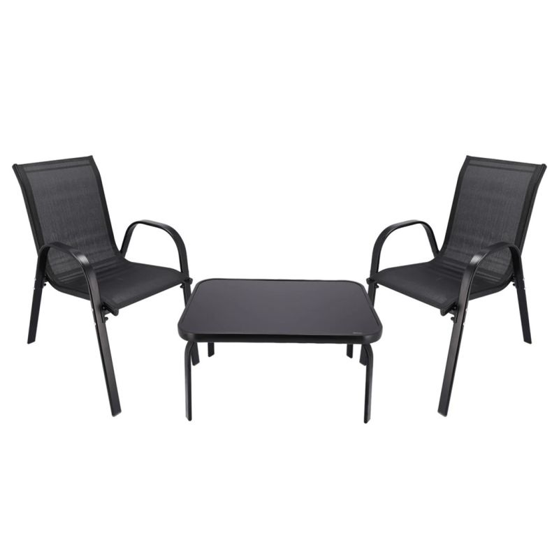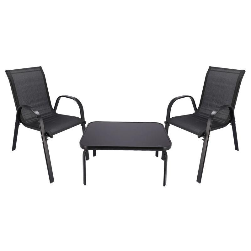 Klasyczny zestaw mebli ogrodowych Black Forest tekstylen dwa krzesła + stolik czarny