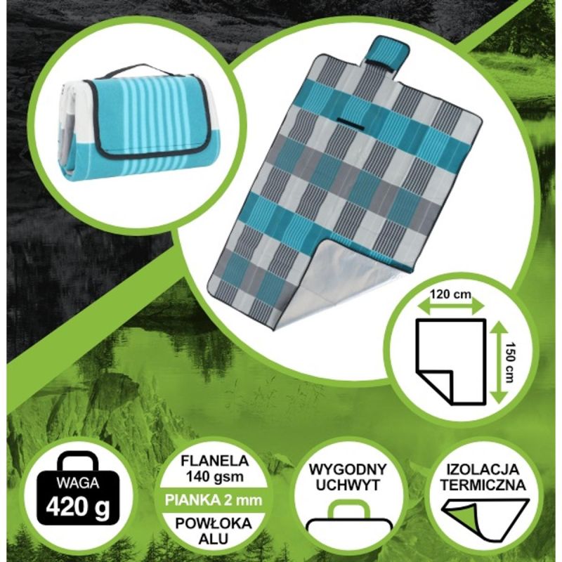 KOC PLAŻOWO PIKNIKOWY 150x120CM Z POWŁOKĄ ALU ENERO CAMP to praktyczny i stylowy koc to idealny towarzysz letnich wypadów oraz rodzinnych spotkań na łonie naturya.