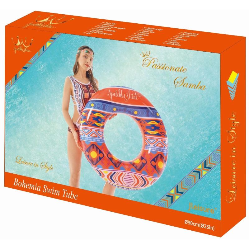 Ten produkt od JLeisure z linii SPARKLE SHINE w stylu Boho jest zgodny z mottem ,, Bądź spontaniczny i wolny’’. Posiada odważne intensywne kolory i wzory zmieszane ze stylem boho, pokazującym piękno wolności i pasji. Świetnie sprawdzi się zarówno na plaży jak i w przydomowym basenie, zapewniając wysoki komfort wypoczynku podczas letniego urlopu i nie tylko. Po skończonym sezonie letnim, koło możesz zabrać ze sobą np.: na kryty basen. Wykonany z grubego 0,18 mm winylu zapewni długa trwałość, i co najważniejsze, odporność na promieniowanie UV i chemię basenową. To wyjątkowe, duże i dmuchane koło do pływania o średnicy zewnętrznej ok.: 79 cm zrobi wrażenie na każdym miłośniku wody!