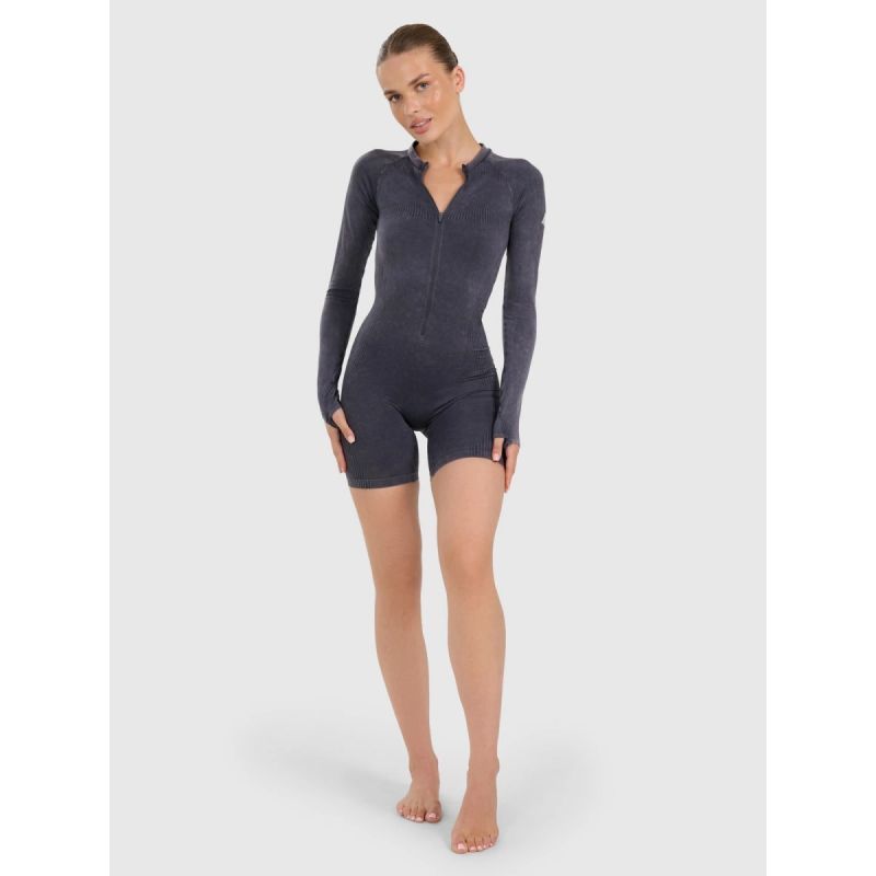 Ten damski kombinezon do jogi 4F został stworzony z myślą o płynnej, świadomej praktyce i pełnym komforcie ruchu. Bezszwowa konstrukcja minimalizuje ryzyko otarć, a technologia 4FDry wspiera szybkie odprowadzanie wilgoci, pomagając zachować uczucie suchości nawet podczas intensywniejszych sesji. Krój slim dopasowuje się do kształtu ciała, podkreślając sylwetkę i zapewniając swobodę w każdej pozycji. Raglanowe rękawy zwiększają mobilność ramion, a krótkie nogawki pozwalają na pełną ekspresję ruchu. Rozpięcie na zamek ułatwia zakładanie oraz pozwala regulować przewiewność. Miękki, elastyczny materiał z dodatkiem elastanu dobrze układa się na ciele, nie prześwituje i jest łatwy w pielęgnacji. To minimalistyczny, a zarazem funkcjonalny model, który sprawdzi się zarówno na macie, jak i w codziennym ruchu.