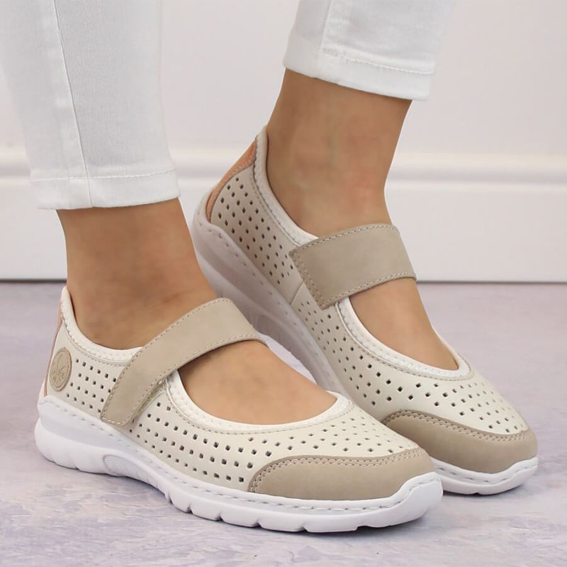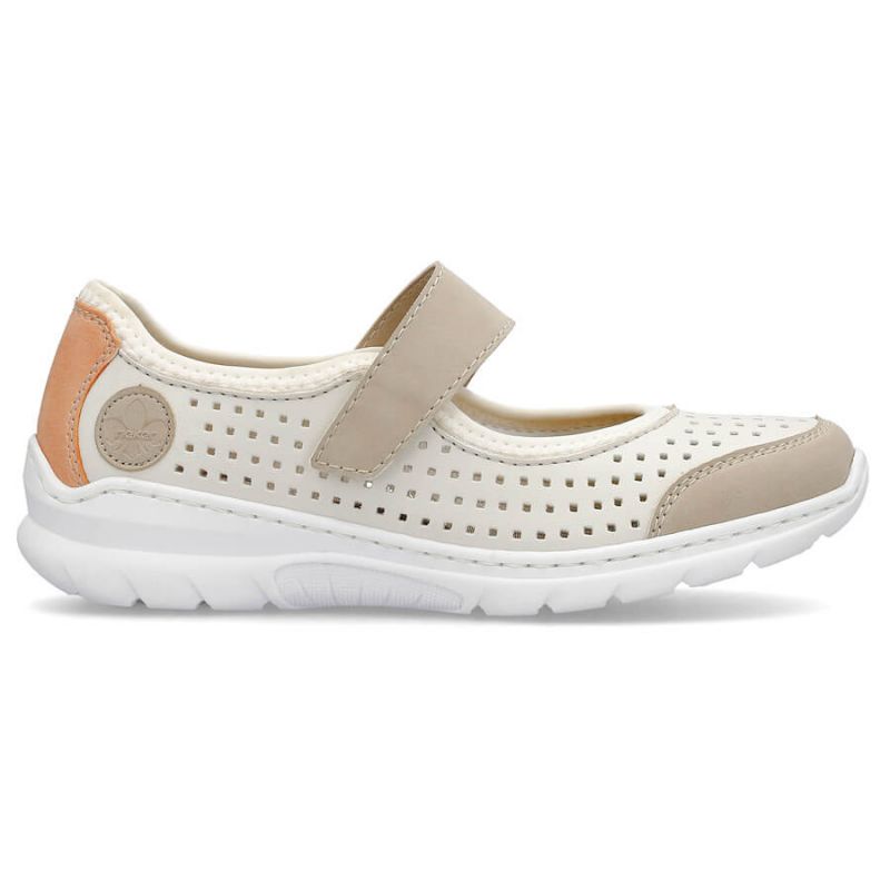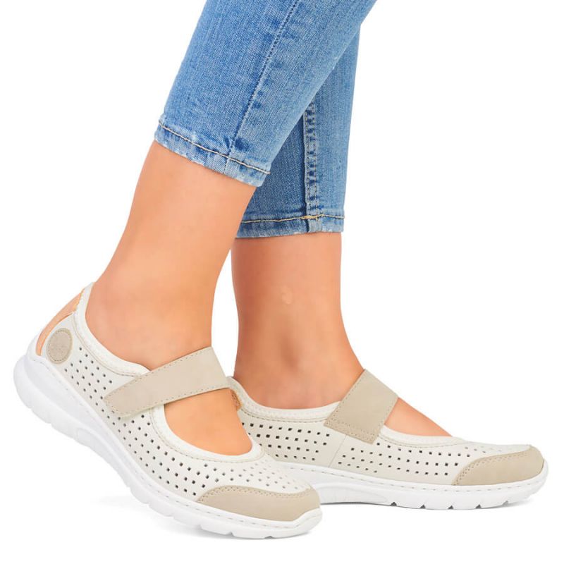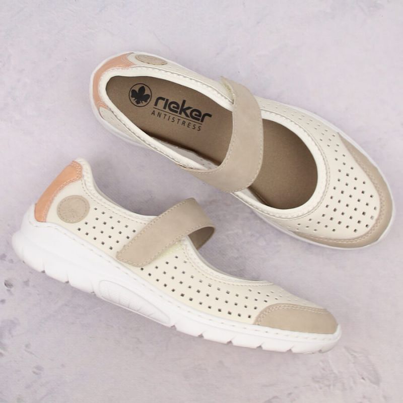 Komfortowe półbuty ażurowe Rieker W RKR575A beżowe