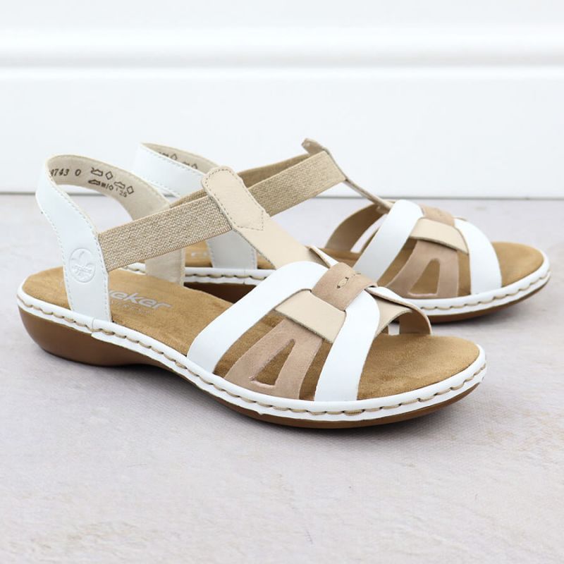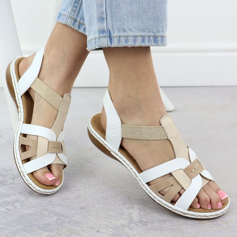 Komfortowe sandały damskie wsuwane na gumki białe Rieker 65918-81