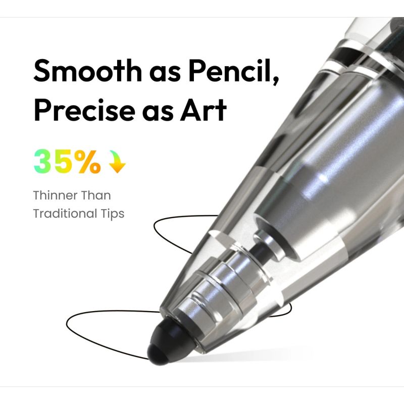 Smuklejsza konstrukcja końcówki w porównaniu do standardowych modeli pozwala uzyskać cieńsze linie i lepszą kontrolę nad detalami. To rozwiązanie szczególnie przydatne podczas rysowania, szkicowania i precyzyjnych notatek.
