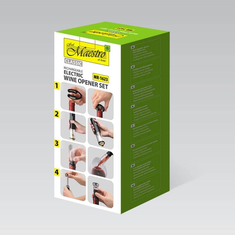 Zestaw akcesoriów do wina 5 elementów: Korkociąg elektryczny, obcinacz do folii,nalewak, korek próżniowy, stojak do przechowywania