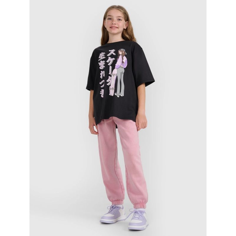 Dziewczęca koszulka 4F oversize z nadrukiem — swoboda w miejskim stylu