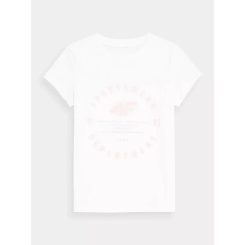 - Klasyczna koszulka dziewczęca marki 4F. Przewiewny i komfortowy t-shirt niezbędny w dziewczęcej garderobie wiosenno-letniej!