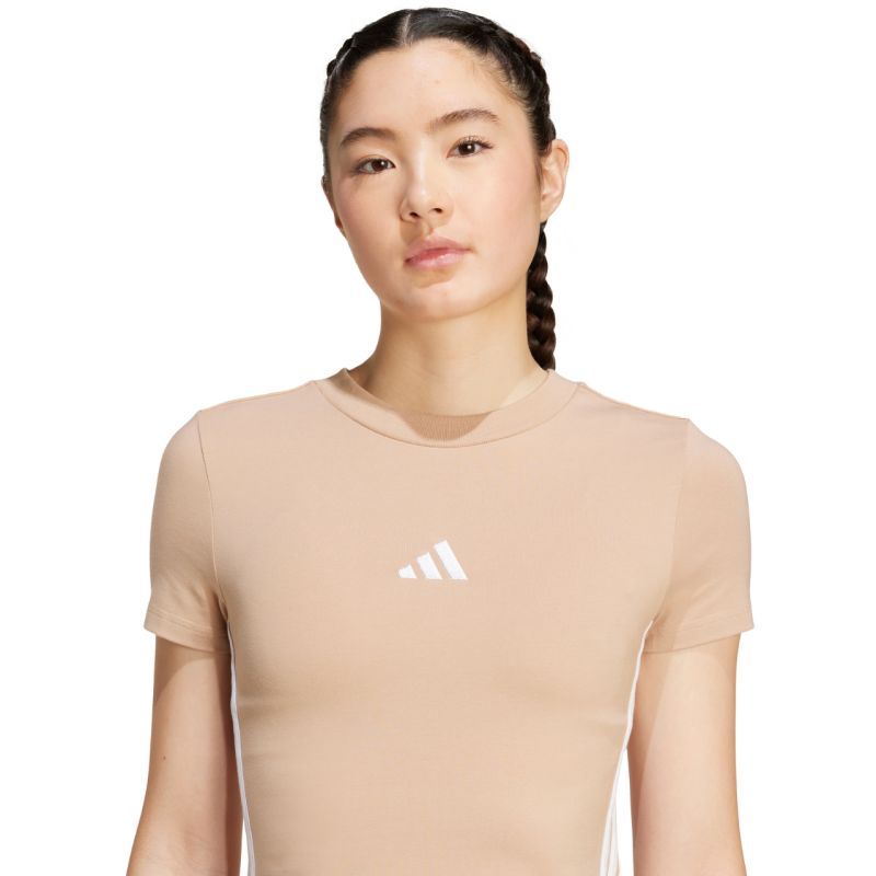 Koszulka damska adidas Essentials 3-Stripes Slim Baby beżowa