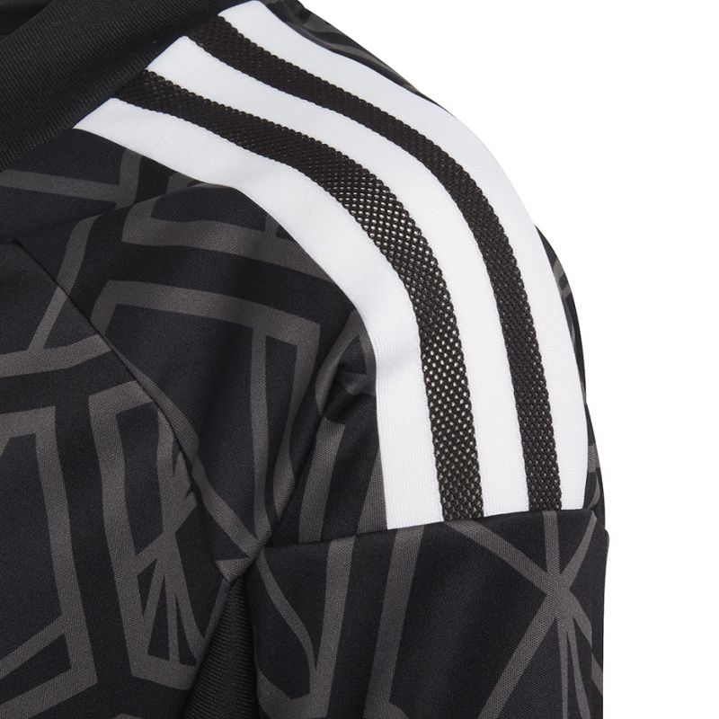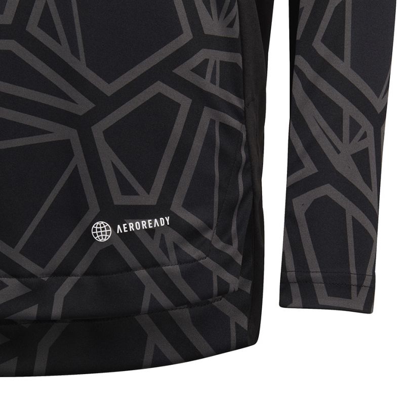 Koszulka bramkarska dla dzieci adidas Condivo 22 Long Sleeve Jersey czarna HB1643 Koszulka bramkarska adidas przeznaczona dla dzieci pozwoli podnieść skuteczność obrony. Szybkoschnący materiał. Technologia Aeroready wentyluje ciało i odprowadza wilgoć. Regularny krój. Kontrastowa grafika. Wydłużony tył. Niewielkie rozcięcia po bokach. Dekolt w serek. Wstawki ze ściągacza na rękawach i pod pachami. Paski na ramionach. Nieco krótsze rękawy. Niewielkie logo. Materiał: 100% poliester z recyklingu