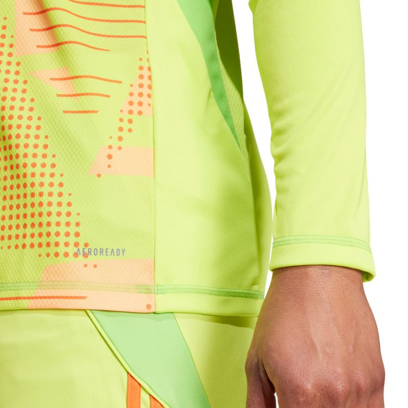 Koszulka bramkarska męska adidas Tiro 24 Competition Long limonkowa IU0291 Męska koszulka bramkarska adidas pozwoli Ci skoncentrować się wyłącznie na meczu. System Aeroready, gwarantujący suchość Twojej skóry. Dopasowany krój z prążkowanym dekoltem w kształcie litery V. Lekko, skrócone rękawy ułatwiają zakładanie rękawic bramkarskich. Paski na ramionach i logo adidas na piersi. Materiał: 100% poliester z recyklingu