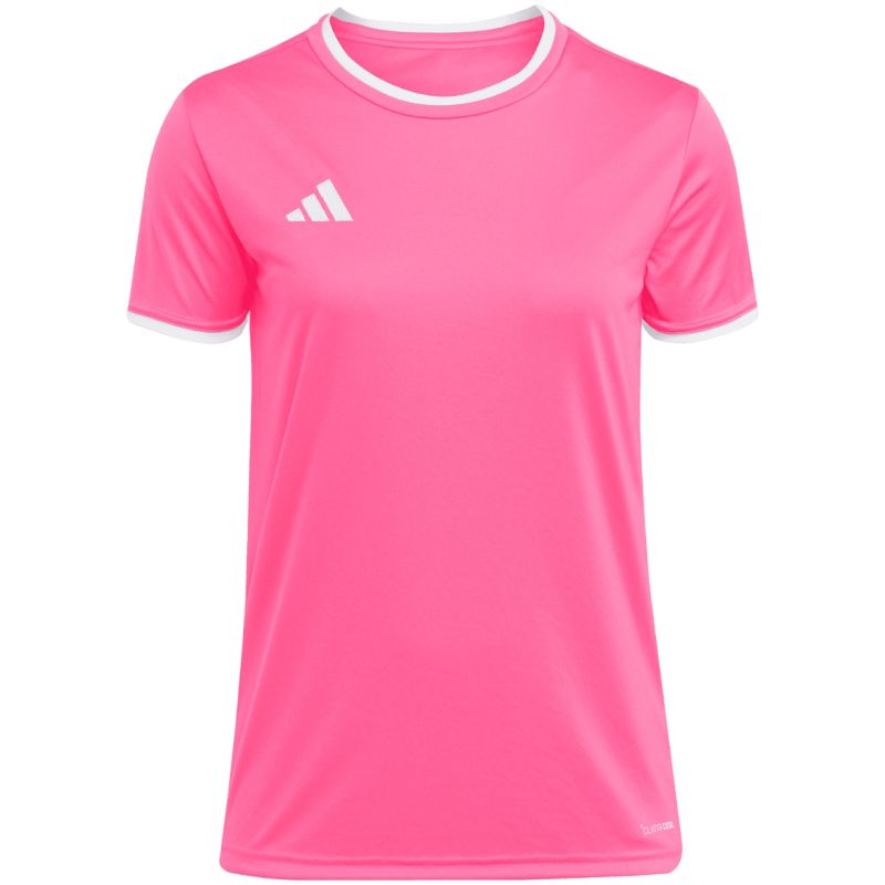 Koszulka damska adidas Entrada 26 Jersey różowa KE9842 Koszulka damska adidas sprawdzi się podczas treningów i decydujących rozgrywek meczowych. Model z linii Entrada. Okrągły dekolt. Wyszywane logo. Koszulkę uszyto z szybkoschnących, poliestrowych włókien wspartych technologią Climacool, która skutecznie odprowadza i rozprasza pot. Dopasowany krój. Poliestrowa tkanina wykorzystana w produkcji tego modelu, powstała w procesie recyklingu, co przyczynia się do ochrony naturalnych zasobów środowiska. Materiał: 100% poliester z recyklingu