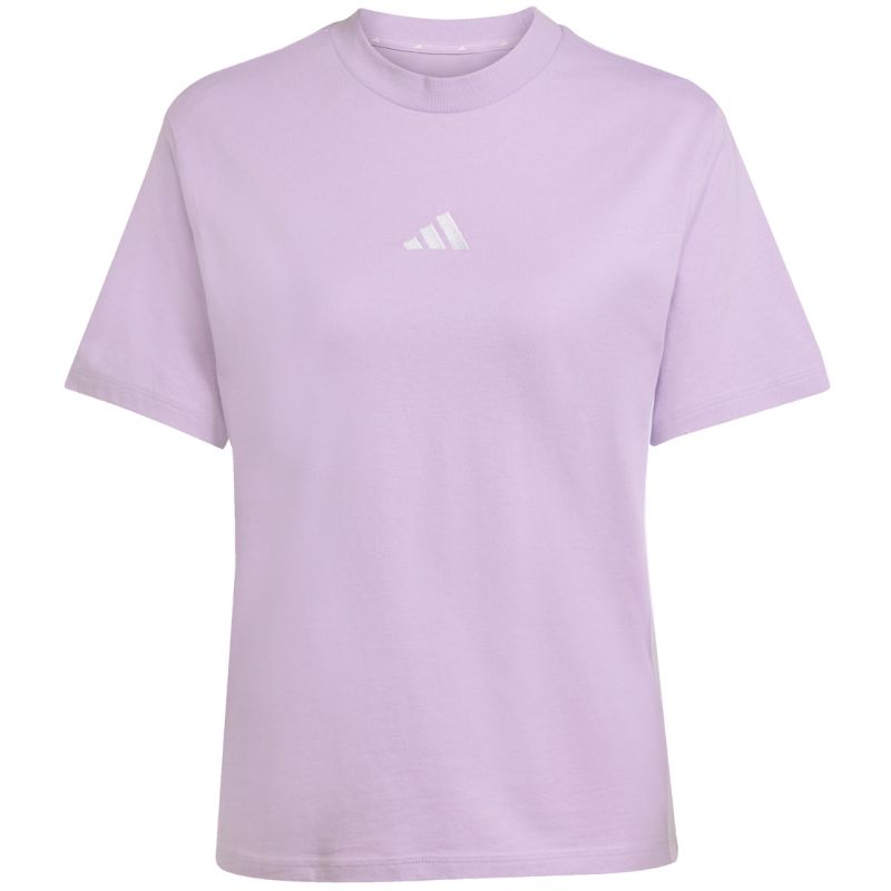 Koszulka damska adidas Essentials 3-Stripes Cotton jasnofioletowa JX7619 Koszulka damska adidas sprawdzi się na co dzień. Regularny krój. Bawełniane włókna. Paski z boku. Niewielkie logo z przodu. Materiał: 100% bawełna