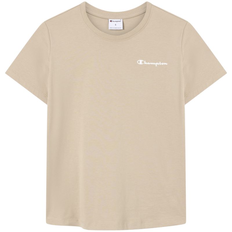 Koszulka damska Champion Short Sleeve T-shirt beżowa 118408 MS041 Koszulka damska Champion sprawdzi się na co dzień. Dopasowany krój. Okrągły dekolt. Miękki materiał. Materiał: 100% bawełna