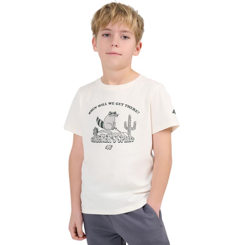 Koszulka dla chłopca 4F M2815 złamana biel 4FJWSS26TTSHM2815 11S Koszulka dla chłopca 4F sprawdzi się na co dzień. Miękka bawełna. Standardowy krój. Okrągły dekolt. Materiał: 100% bawełna