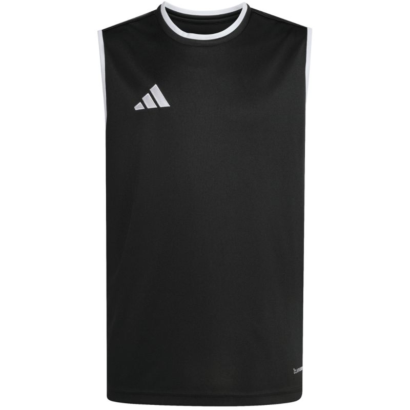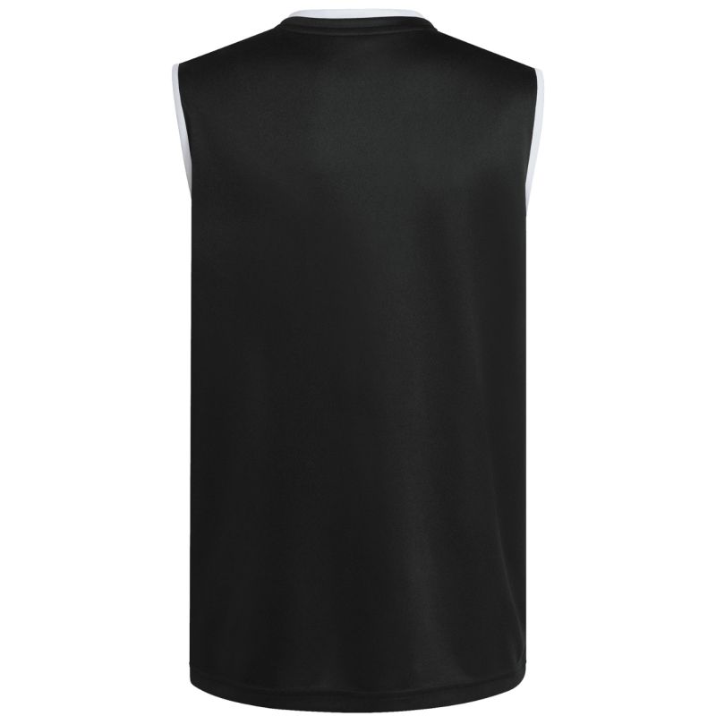 Koszulka dla dzieci adidas Entrada 26 Sleeveless Jersey czarna KB3933 Koszulka dla dzieci adidas sprawdzi się podczas treningów. Dopasowany krój bez rękawów. Panele z siateczki na klatce piersiowej. Technologia Climacool odprowadza i rozprasza pot, zapewniając chłód i suchość. Włókna powstały w procesie recyklingu. Materiał: 100% poliester z recyklingu