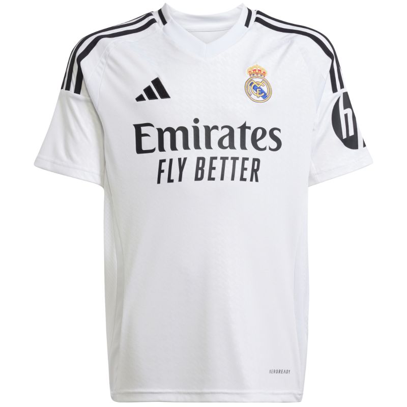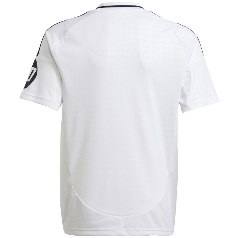 Koszulka dla dzieci adidas Real Madrid 24/25 Home biała JX2139 Koszulka dla dzieci adidas w domowej wersji na sezon 2024/25 to nie lada gratka dla kibiców Realu Madryt. Wzór w pepitkę na tej koszulce piłkarskiej powstał z inspiracji strojami „chulapo” noszonymi na dorocznym festynie ku czci świętego Izydora w Madrycie i stanowi stylowy akcent. Koszulka dla kibiców Los Blancos inspirowana tradycją powinna znaleźć się w Twojej kolekcji. Ten produkt został w 100% wykonany z materiałów pochodzących z recyklingu. Dane techniczne:· Materiał: 100% poliester (pochodzący z recyklingu)· Standardowy krój· Dekolt w serek· Aeroready· Wstawki boczne z siateczki· Wyszywane godło Realu Madryt