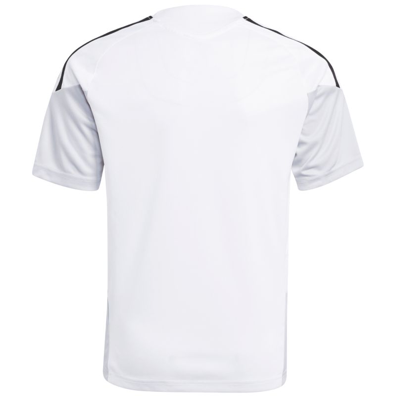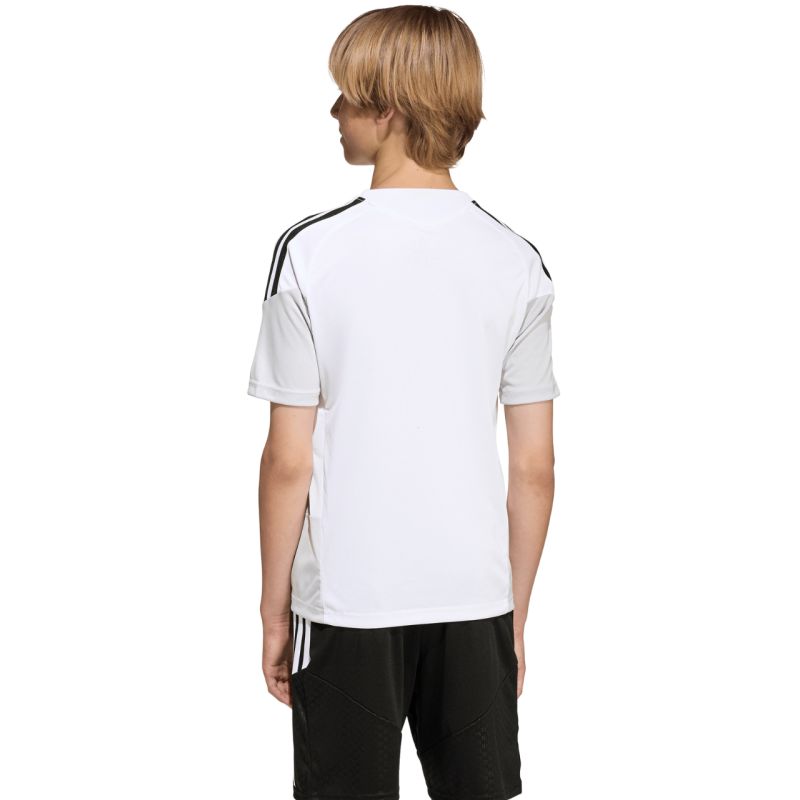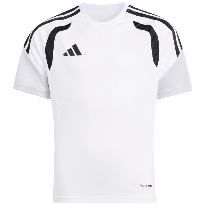 Koszulka dla dzieci adidas Tiro 26 Competition Training Jersey biało-czarna KA7603 Koszulka dla dzieci adidas sprawdzi się podczas treningów i decydujących rozgrywek. Regularny krój. Wstawki z siateczki na klatce piersiowej. Technologia Climacool pochłania i odprowadza pot. Włókna powstały w procesie recyklingu. Subtelne logo. Paski na rękawach. Materiał: 100% poliester z recyklingu