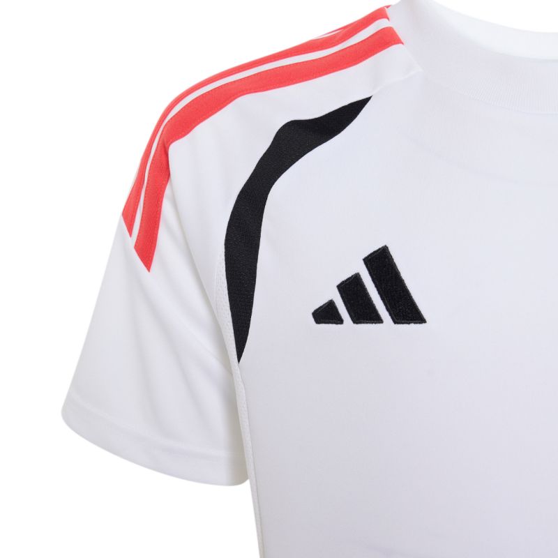 Koszulka dla dzieci adidas Tiro 26 League Jersey biało-czarno-czerwona KR0369 Koszulka dla dzieci adidas sprawdzi się podczas rozgrywek piłkarskich. Regularny krój. Okrągły dekolt. Panele z siateczki. Technologia Climacool. Włókna powstały w procesie recyklingu. Materiał: 100% poliester z recyklingu