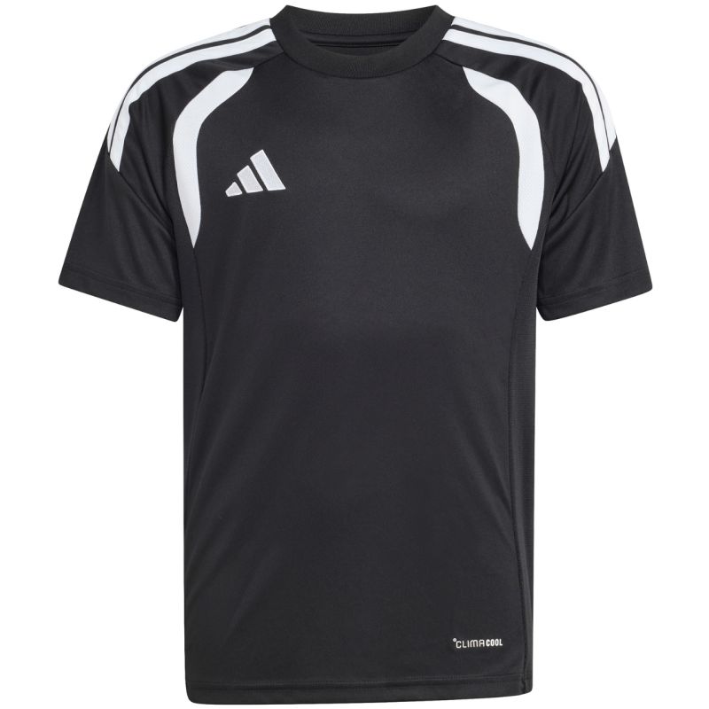 Koszulka dla dzieci adidas Tiro 26 League Jersey czarna KB1319 Koszulka dla dzieci adidas sprawdzi się podczas rozgrywek piłkarskich. Regularny krój. Okrągły dekolt. Panele z siateczki. Technologia Climacool. Włókna powstały w procesie recyklingu. Materiał: 100% poliester z recyklingu