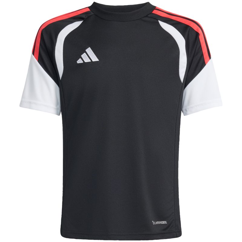 Koszulka dla dzieci adidas Tiro 26 League Jersey czarno-czerwona KB1326 Koszulka dla dzieci adidas sprawdzi się podczas rozgrywek piłkarskich. Regularny krój. Okrągły dekolt. Panele z siateczki. Technologia Climacool. Włókna powstały w procesie recyklingu. Materiał: 100% poliester z recyklingu