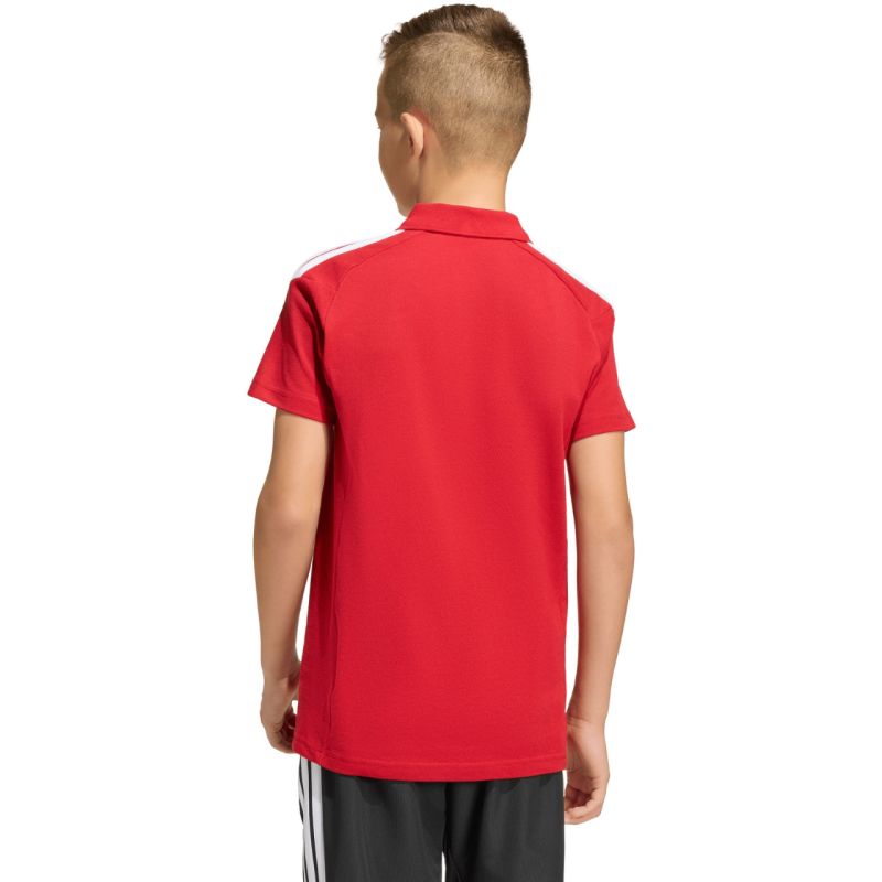 Koszulka dla dzieci adidas Tiro 26 League Polo czerwona KF3408 Koszulka dla dzieci adidas sprawdzi się podczas kibicowania poza linią boczną boiska i podróżowania z drużyną na mecze. Pochodzi z kolekcji Tiro. Kołnierzyk i listwa na guziki. Regularny krój. Wyszywane logo. Dzianina typu pique. Materiał: 70% bawełna, 30% poliester z recyklingu