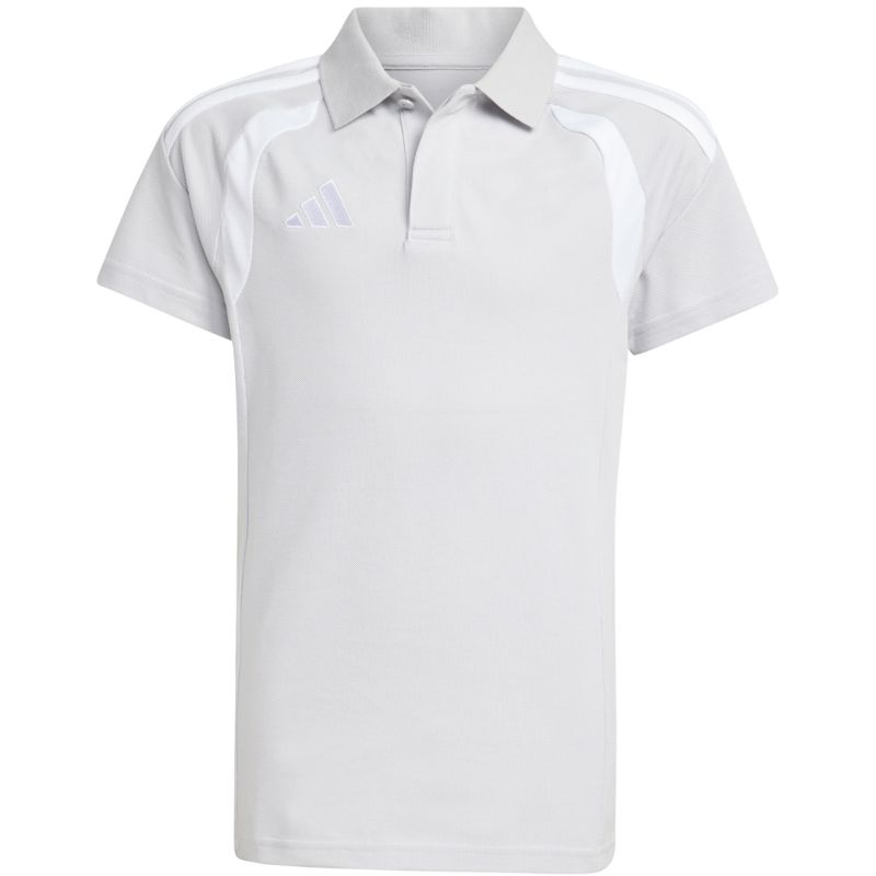 Koszulka dla dzieci adidas Tiro 26 League Polo szara KF3405 Koszulka dla dzieci adidas sprawdzi się podczas kibicowania poza linią boczną boiska i podróżowania z drużyną na mecze. Pochodzi z kolekcji Tiro. Kołnierzyk i listwa na guziki. Regularny krój. Wyszywane logo. Dzianina typu pique. Materiał: 70% bawełna, 30% poliester z recyklingu