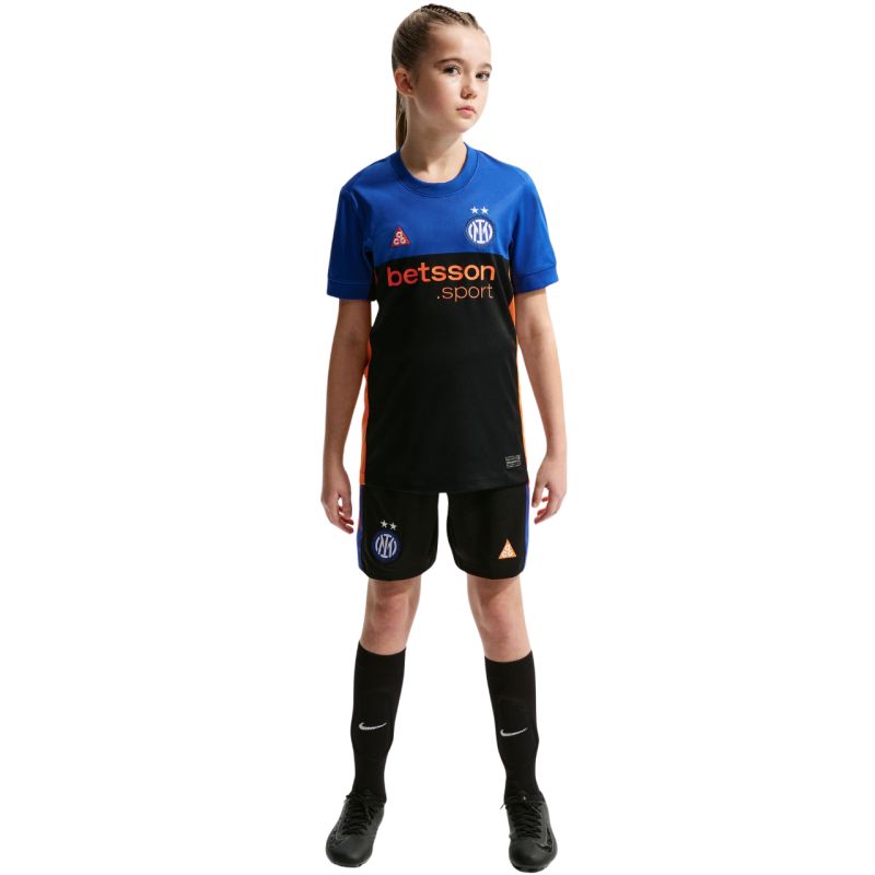 Koszulka dla dzieci Nike Inter Mediolan 2026 Stadium SE czarno-niebieska IB3536 413 Koszulka dla dzieci Nike Inter Mediolan łączy piłkarski styl z duchem przygody. Po raz pierwszy klub wychodzi z boiska prosto w Alpy – idealna na każdą wysokość (na większe wspinaczki można dodać kurtkę). Fason inspirowany strojami gwiazd piłki nożnej i kolekcja Stadium zapewniają sportowy wygląd i komfort. Technologia Nike Dri-FIT odprowadza pot, przyspieszając jego odparowanie, dla pełnej wygody przez cały dzień. Dopasowany krój. Replika stroju dla fanów Inter Mediolan. Materiał: 100% poliester