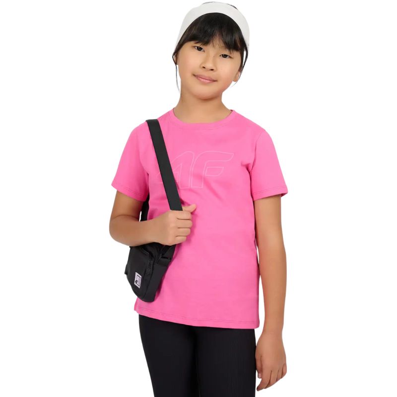 Koszulka dla dziewczynki 4F F3004 ciemny róż 4FJWSS26TTSHF3004 53S Koszulka dla dziewczynki 4F sprawdzi się na co dzień. Standardowy krój. Okrągły dekolt. Miękki materiał. Materiał: 100% bawełna