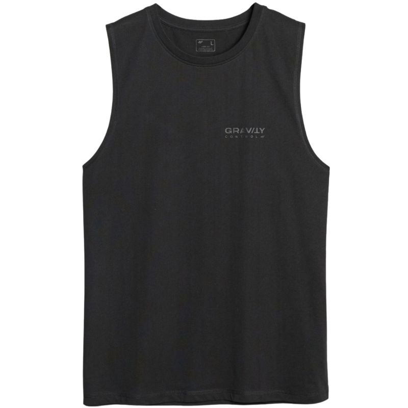 Koszulka męska 4F M128 głęboka czerń 4FWSS25TSLEM128 20S Męska koszulka 4F bez rękawów sprawdzi się na co dzień i w czasie sportowych aktywności. Krój oversize, luźne dopasowanie, długości do linii bioder. Gramatura 180 gsm. Na piersi niewielki napis. Szerokie wycięcia na ręce. Materiał: 100% bawełna