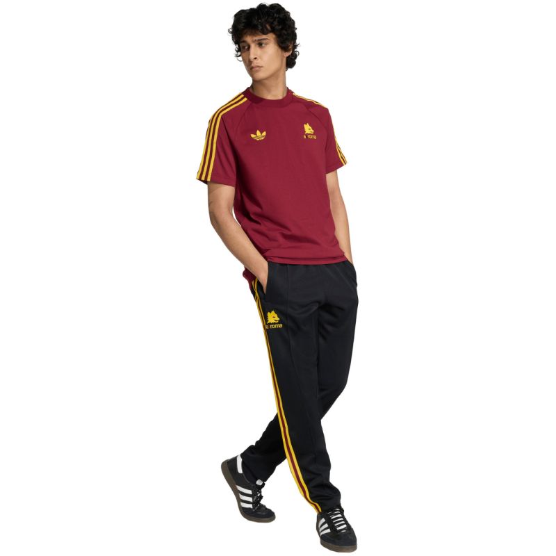 Koszulka męska adidas AS Roma Originals Tee bordowa JZ7185 Koszulka adidas łączy klasyczne barwy klubu z nowoczesnym designem, tworząc stylowy hołd dla bogatej historii Romy. Miękka dzianina z bawełny i poliestru. Logo adidas Trefoil. Lekko dopasowany krój. Materiał: 52% bawełna, 48% poliester