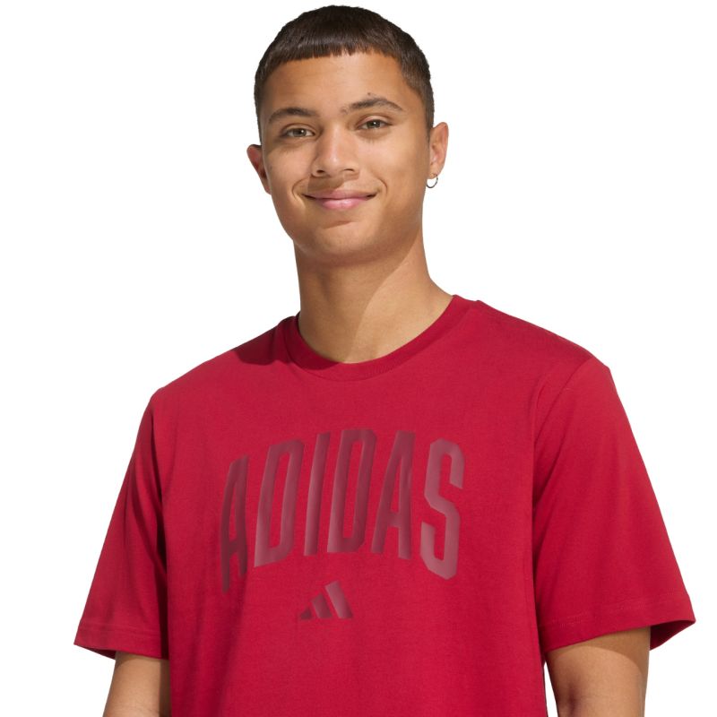 Koszulka męska adidas Collegiate Lineage czerwona KH4593 Męska koszulka adidas inspirowana akademickim stylem sprawdzi się na co dzień. Miękka konstrukcja z bawełnianej tkaniny. Standardowy krój. Zaokrąglony dekolt. Materiał: 100% bawełna