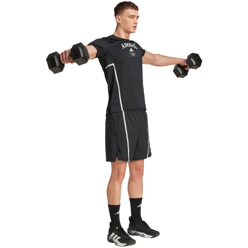 Koszulka męska adidas Designed for Training Legacy Heritage Tee czarna KA5284 Koszulka dla mężczyzn sprawdzi się podczas treningów. Dane techniczne:· Materiał: 100% poliester pochodzący z recyklingu· Dopasowany krój· Zaokrąglony dekolt· Technologia Climacool· Rozcięcia po bokach· Dłuższy krój z tyłu