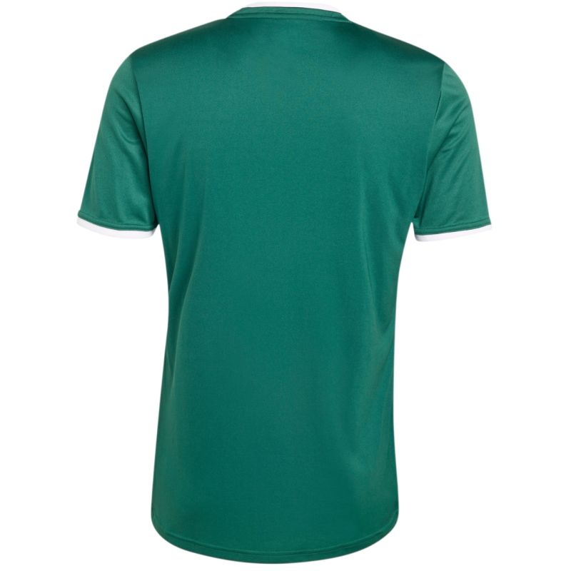 Koszulka męska adidas Entrada 26 Jersey zielona KE9832 Koszulka męska adidas sprawdzi się podczas treningów i meczów. Dopasowany krój. Okrągły dekolt. Technologia Climacool. Poliestrowe włókna pochodzą z recyklingu. Wyszywane logo. Materiał: 100% poliester pochodzący z recyklingu