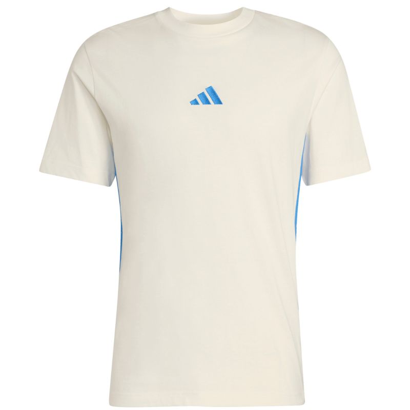Koszulka męska adidas Essentials 3 Stripes kremowa KC0888 Koszulka dla mężczyzn adidas sprawdzi się podczas codziennego użytkowania. Standardowy krój. Paski po bokach. Niewielkie logo brandu z przodu. Miękki w dotyku materiał. Materiał: 100% bawełna