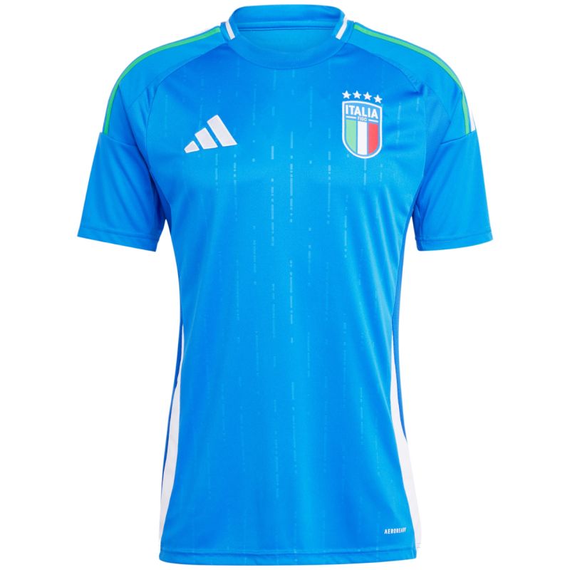 Koszulka męska adidas Italy 24 Home niebieska IN0657 Oficjalna koszulka męska adidas w domowej wersji to nie lada gratka dla kibiców reprezentacji Włoch. Białe logo adidas. Paski na ramionach. Dane techniczne:· Materiał: 100% poliester z recyklingu· Dopasowany krój· Zaokrąglony dekolt ze ściągaczem· Aeroready· Panele z siateczki pod ramionami, na bokach i w dolnej części pleców