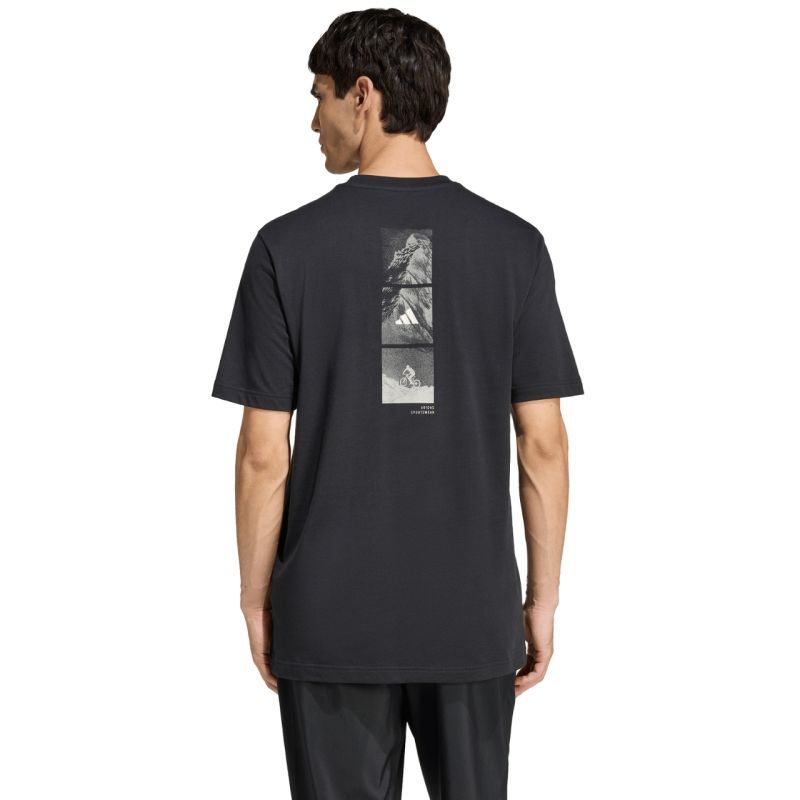 Koszulka męska adidas Outdoor Mountain Biking Graphic czarna KB2536 Koszulka męska adidas sprawdzi się na co dzień. Standardowy krój. Krótkie rękawy. Miękka, przyjemna w dotyku dzianina. Nadruk na plecach wykonany techniką gumowego sitodruku. Niewielkie logo z przodu. Materiał: 100% bawełna