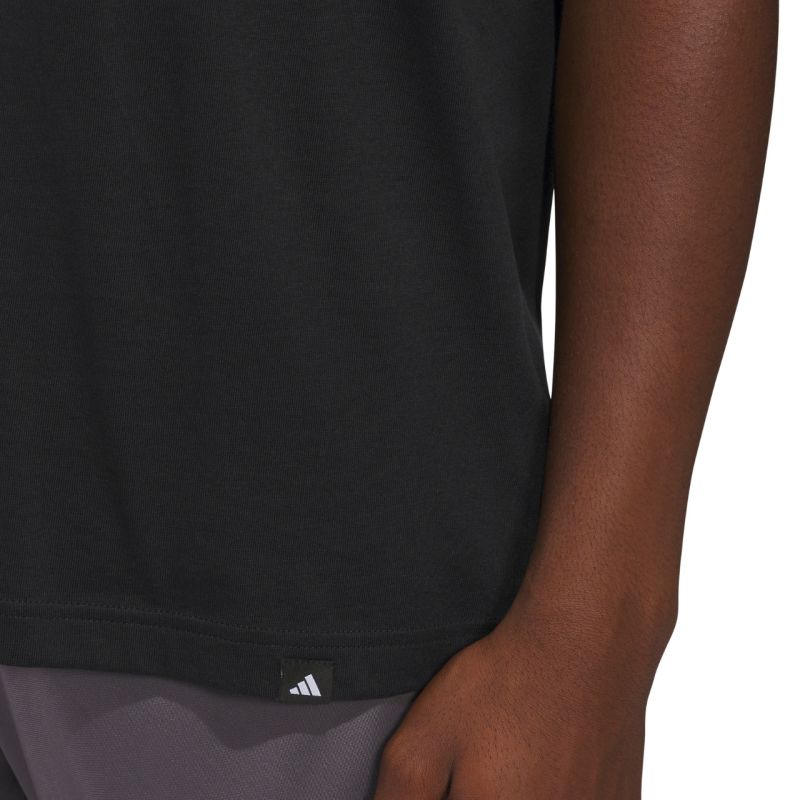Koszulka męska adidas Summer Sunset Graphic czarna KC9243 Koszulka męska adidas o regularnym kroju, wykonana z lekkiej i oddychającej dzianiny single jersey, zapewnia wygodę na co dzień. Miękki materiał dobrze dopasowuje się do sylwetki i sprawdza się w cieplejsze dni. Grafika „Summer Sunset” nadaje jej letni, swobodny styl, a logo adidas podkreśla sportowy charakter i jakość wykonania. Materiał: 100% bawełna