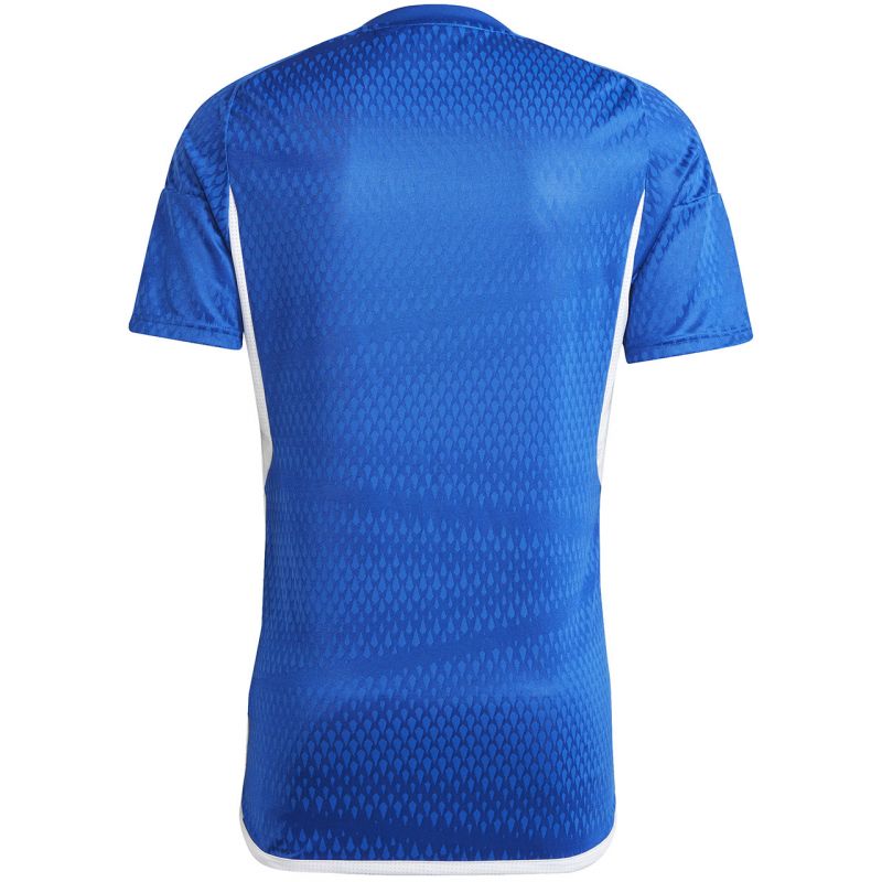 Koszulka męska adidas Tiro 23 Competition Match Jersey niebieska HT5684 Koszulka męska adidas sprawdzi się podczas rozgrywek piłkarskich. Dopasowany krój. Trójkątny dekolt. Siateczkowe panele pod pachami. Technologia Aeroready oprowadza nadmiar wilgoci. Włókna powstały w procesie recyklingu. Materiał: 100% poliester z recyklingu