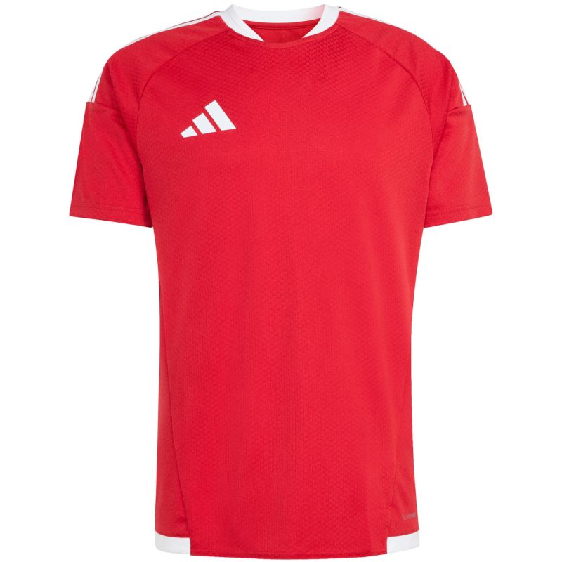 Koszulka męska adidas Tiro 26 Competition Match Jersey czerwono-biała KA6173 Koszulka męska adidas sprawdzi się podczas rozgrywek piłkarskich. Dopasowany krój. Okrągły dekolt z delikatnym kołnierzykiem. Siateczkowe panele. Technologia Climacool odprowadza i rozprasza pot. Włókna powstały w procesie recyklingu. Logo naniesione termotransferem. Paski na ramionach. Materiał: 100% poliester z recyklingu