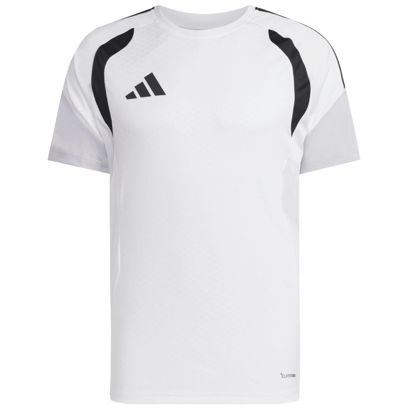 Koszulka męska adidas Tiro 26 Competition Training Jersey biała KA7583 Koszulka dla mężczyzn adidas sprawdzi się podczas treningów i meczów. Dopasowany krój. Okrągły dekolt. Technologia Cllimacool odprowadza i rozprasza pot, zapewniając przewiewność, suchość. Włókna powstały w procesie recyklingu. Tłoczny wzór na przednim panelu. Materiał: 100% poliester z recyklingu