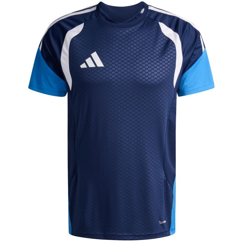 Koszulka męska adidas Tiro 26 Competition Training Jersey granatowa JX4255 Koszulka dla mężczyzn adidas sprawdzi się podczas treningów i meczów. Dopasowany krój. Okrągły dekolt. Technologia Cllimacool odprowadza i rozprasza pot, zapewniając przewiewność, suchość. Włókna powstały w procesie recyklingu. Tłoczny wzór na przednim panelu. Materiał: 100% poliester z recyklingu