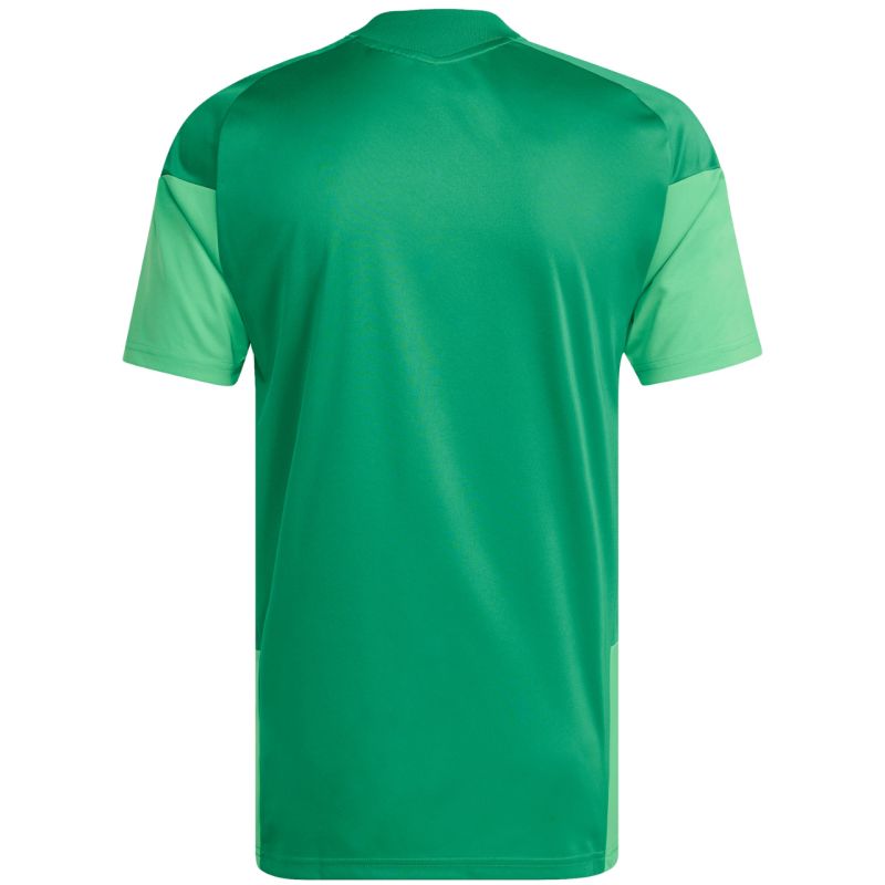 Koszulka męska adidas Tiro 26 Competition Training Jersey zielona KA7585 Koszulka dla mężczyzn adidas sprawdzi się podczas treningów i meczów. Dopasowany krój. Okrągły dekolt. Technologia Cllimacool odprowadza i rozprasza pot, zapewniając przewiewność, suchość. Włókna powstały w procesie recyklingu. Tłoczny wzór na przednim panelu. Materiał: 100% poliester z recyklingu